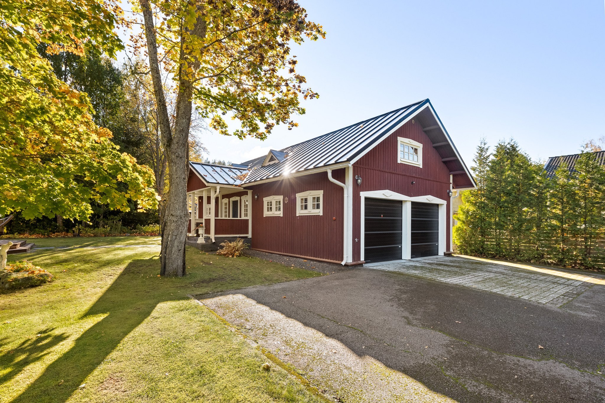 – Arkkitehti Markku Landelin piirtämä v. 2002 valmistunut talousrakennus, jossa kahden auton lämmin talli, lämmintä askartelu/työtilaa vesipisteineen, varasto, puuliiteri. Rakennuksen yläkerrassa nukkumatilaa.