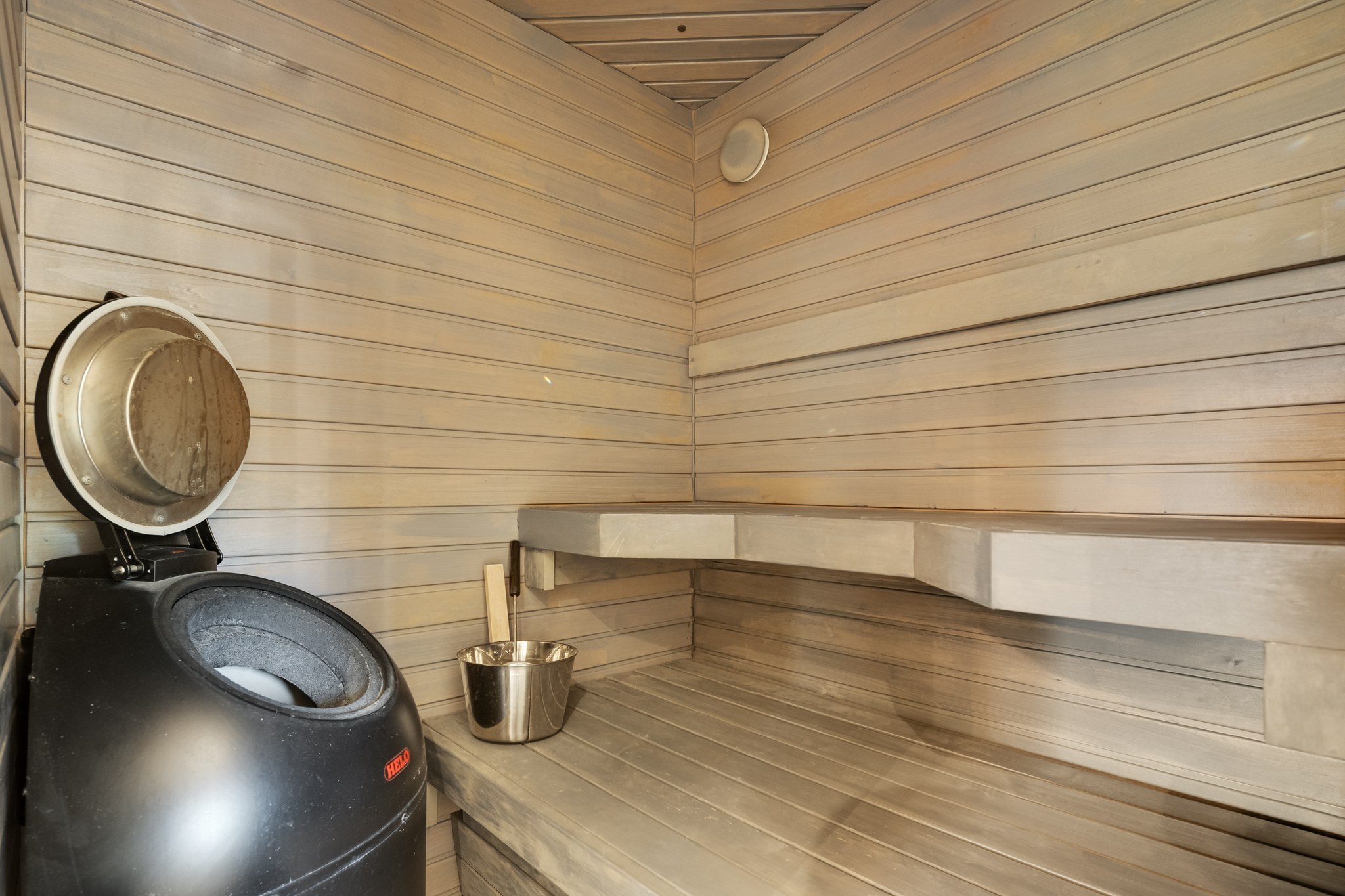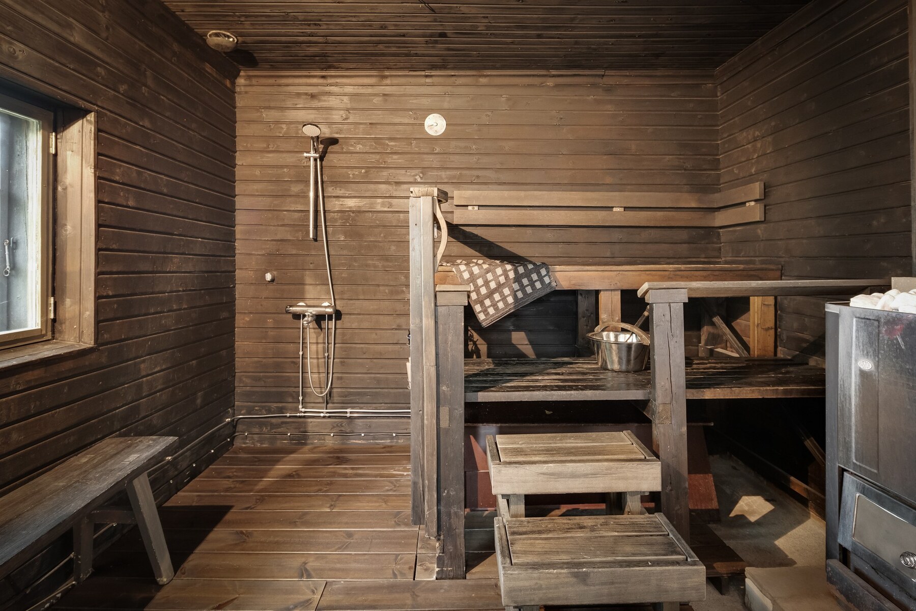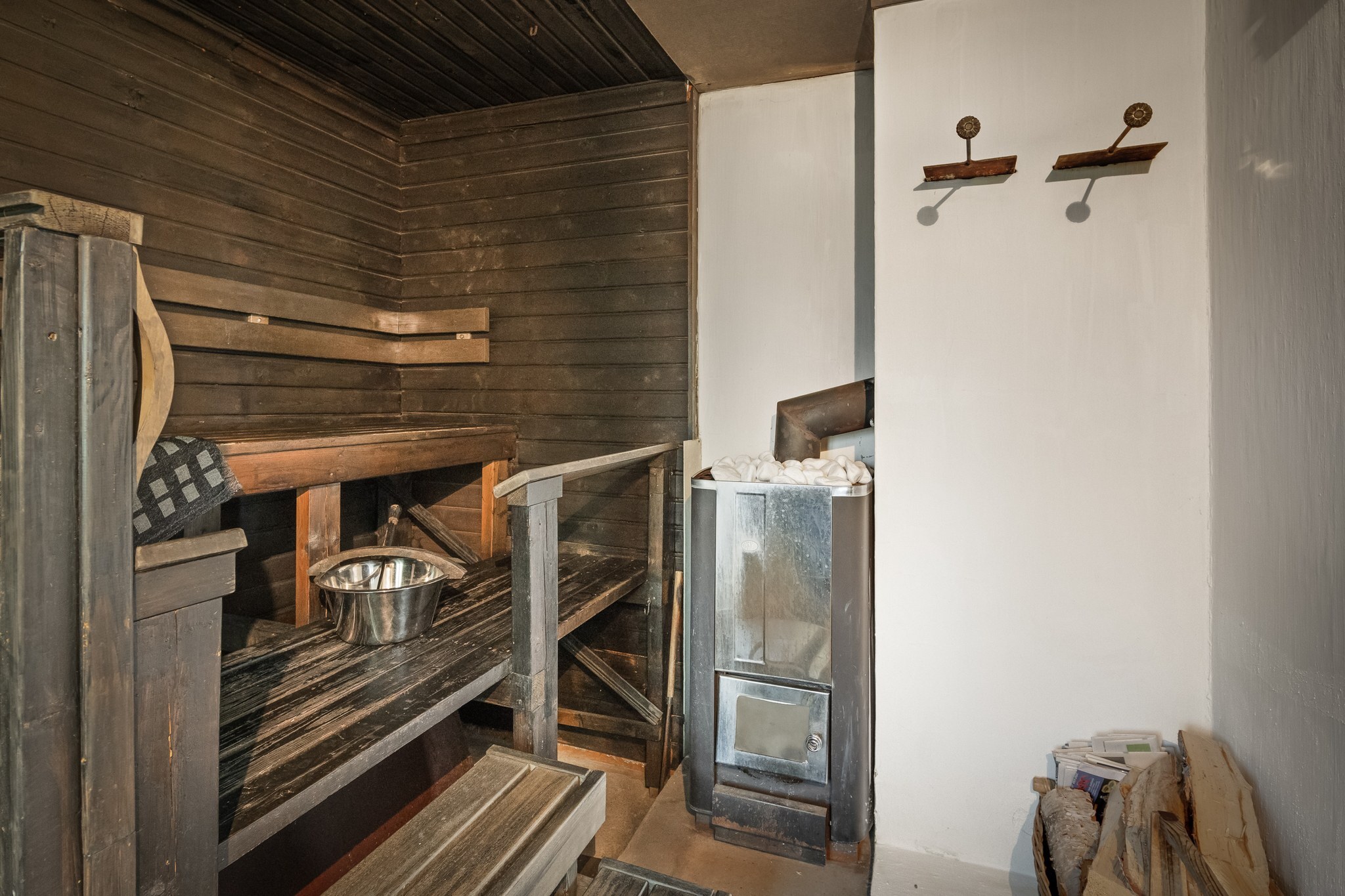 – Puulämmitteinen pihasauna, jossa pesuhuone, kodinhoitohuone, takkatupa sekä parvi.