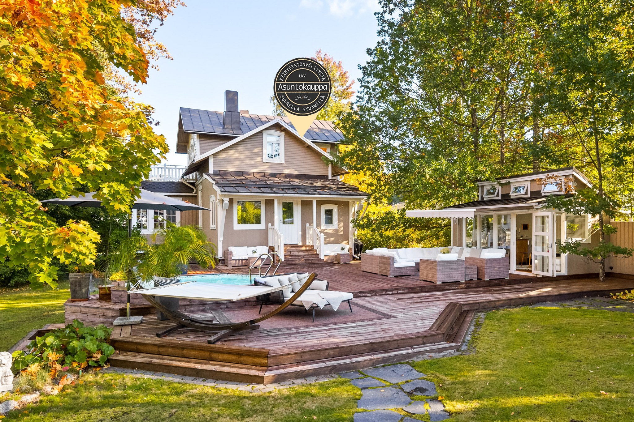 – Kokonaisuuteen kuuluu myös rakentamaton rantatontti 480 m² Hiidenveden rannalla.