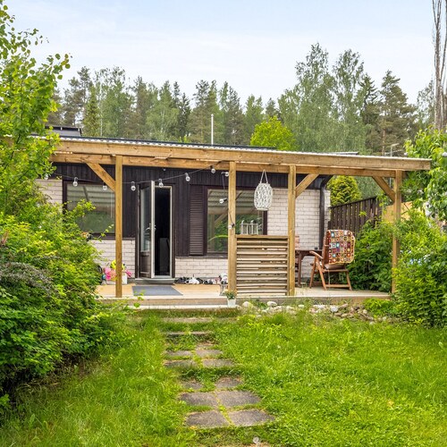 -Pari vuotta vanha tilava ja katettu terassi, jonka jatkeena hyvän kokoinen nurmipiha