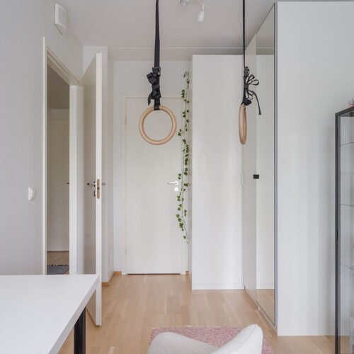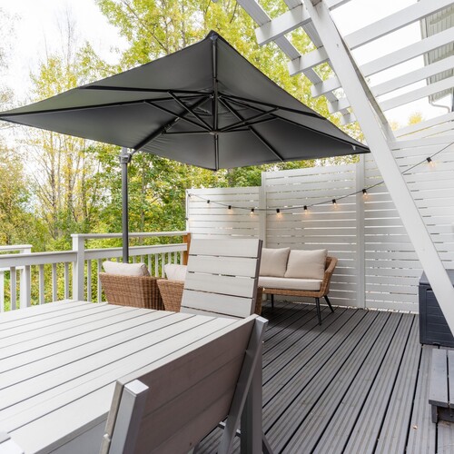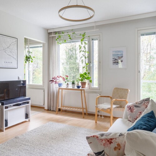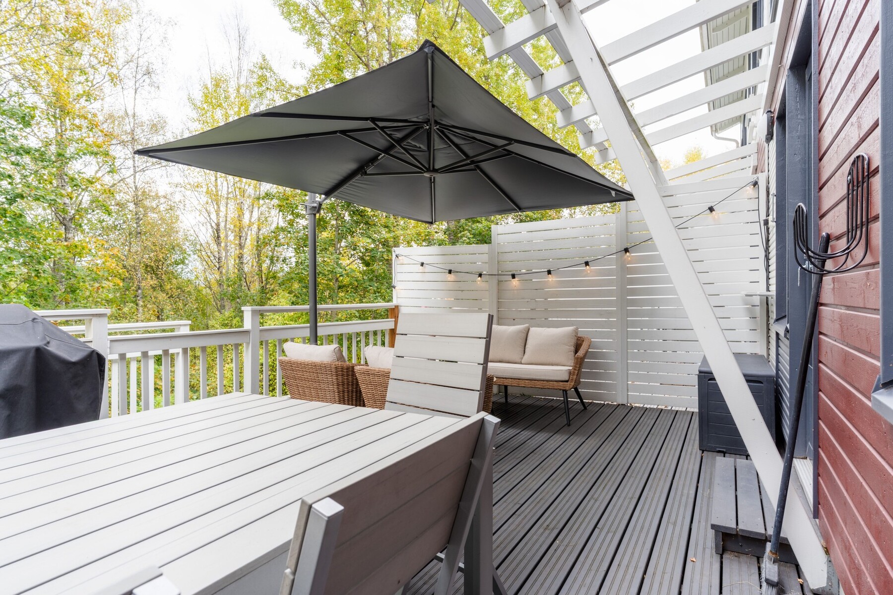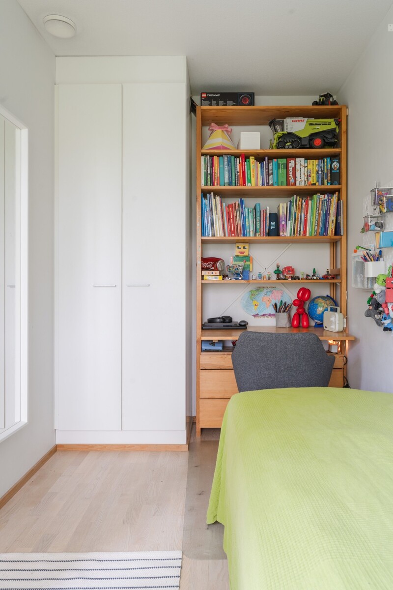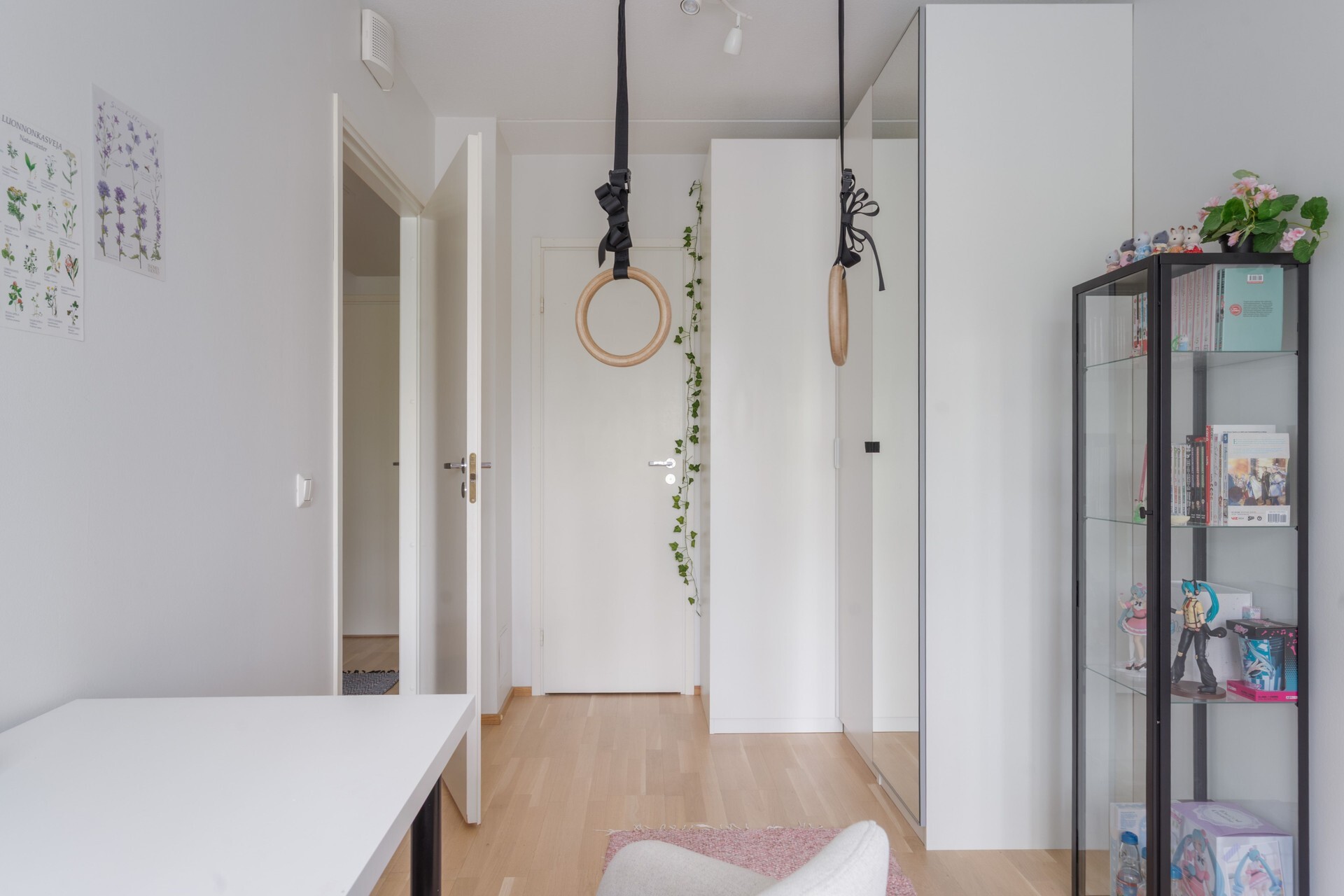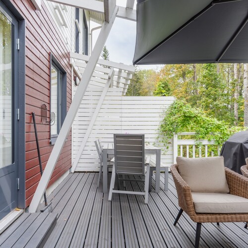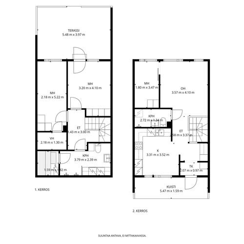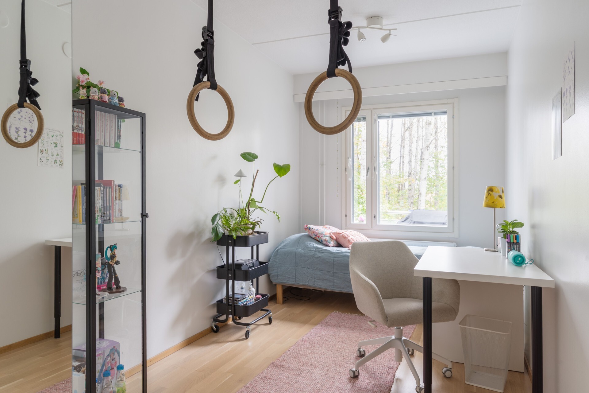 -Kaksikerroksinen pohjaratkaisu: makuuhuone ja kylpyhuone molemmissa kerroksissa