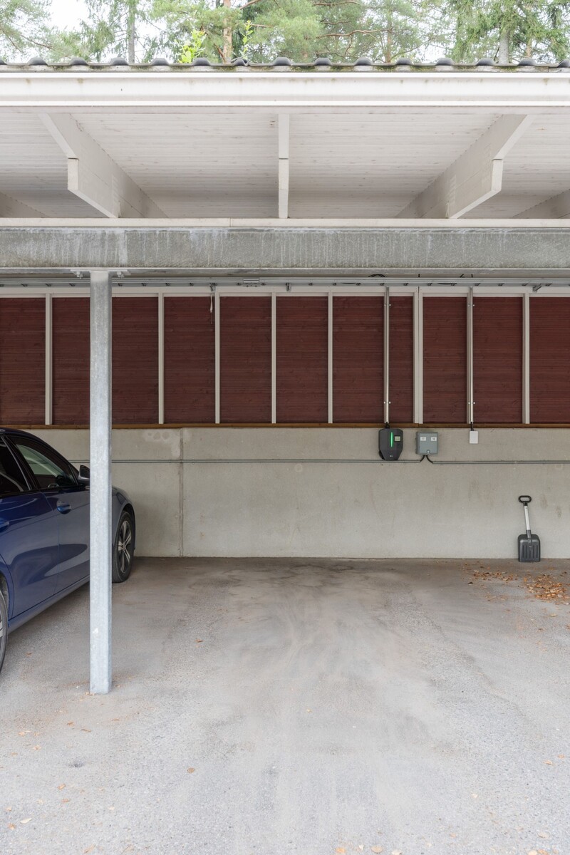 Autokatoksessa 11 kWh sähköauton latausasema (todellinen maksiminopeus määräytyy latausajankohdan vapaan kapasiteetin mukaan). Autokatospaikka kuuluu kauppaan.