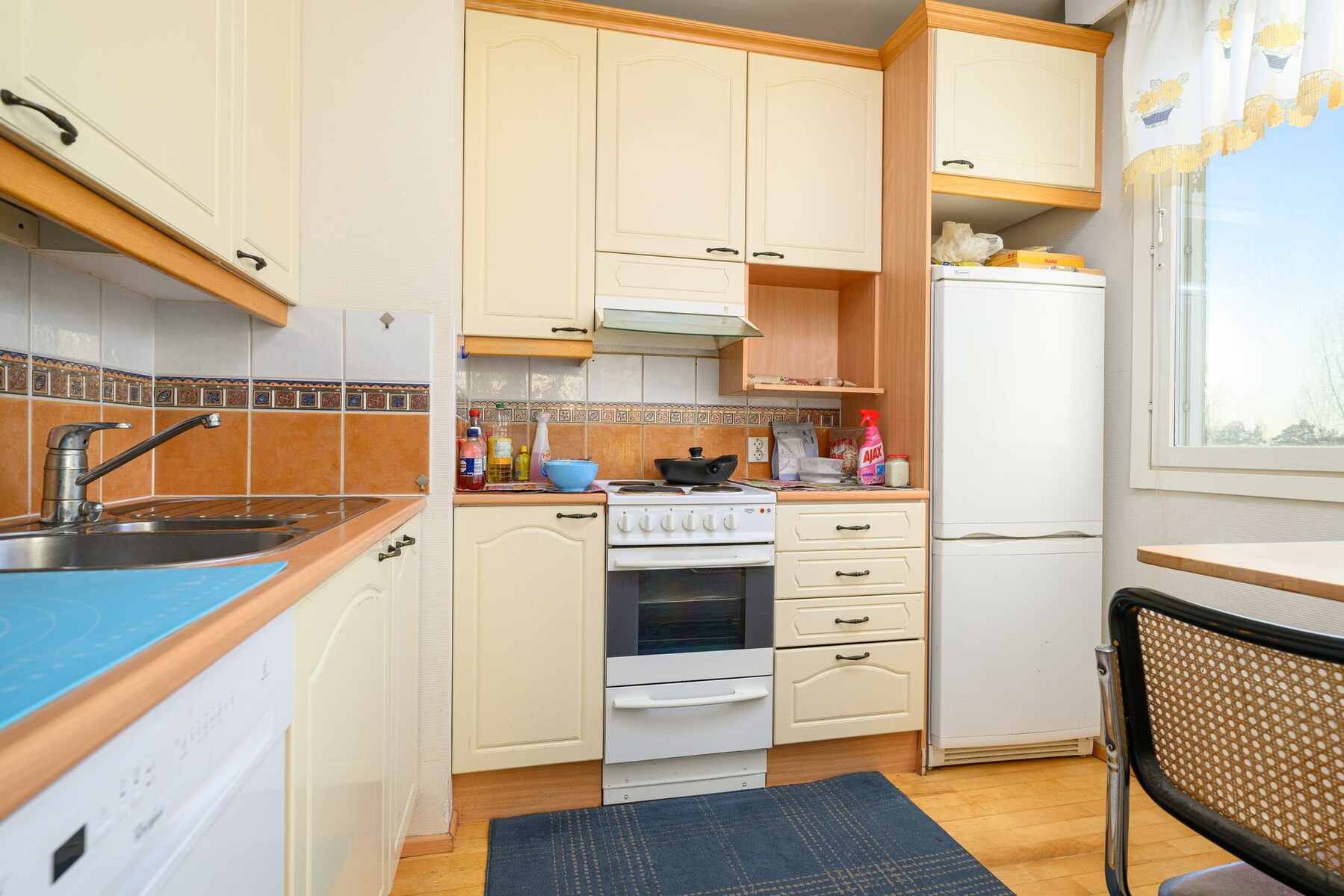 Varusteet: jääkaappipakastin, astianpesukone, sähköliesi