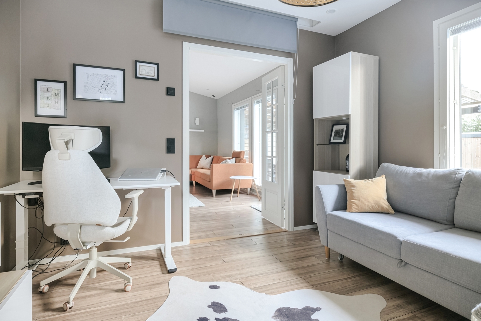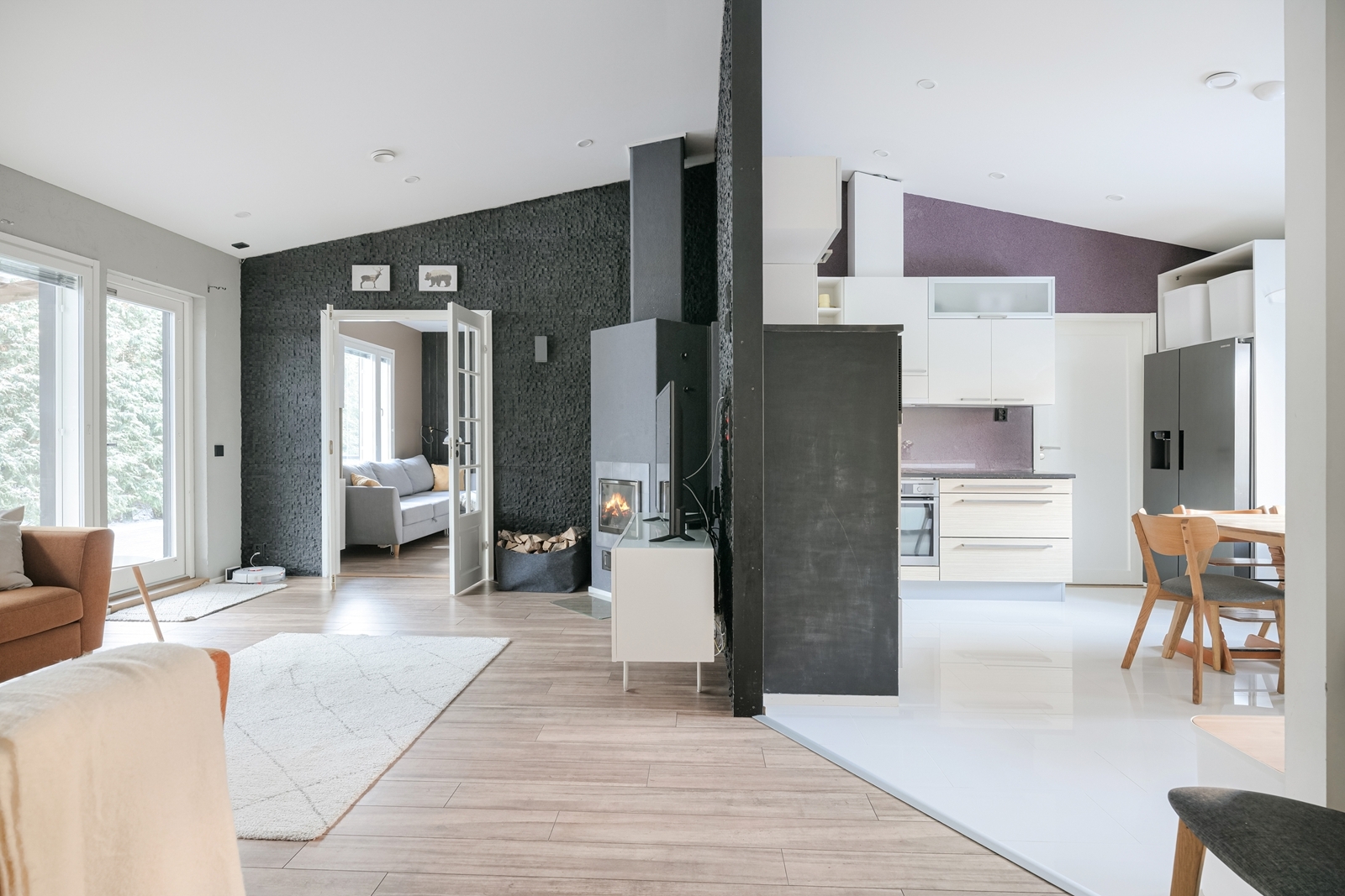– Korkeaa tilaa olevan olohuoneen kruunaa varaava takka ja kodista löytyy myös ilmalämpöpumppu.