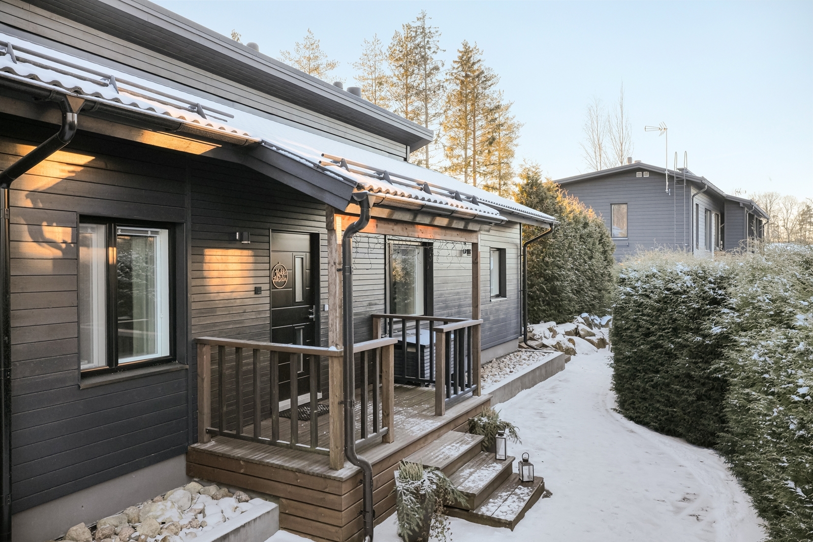 Laadulla ja tyylillä v. 2013 rakennettu paritalokoti Hiidenveden läheisyydessä rauhallisella alueella.