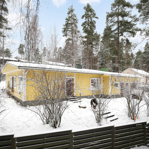 Nummelan keskustassa vuonna 1964 valmistunut valoisa koti, jossa tilat yhdessä tasossa.